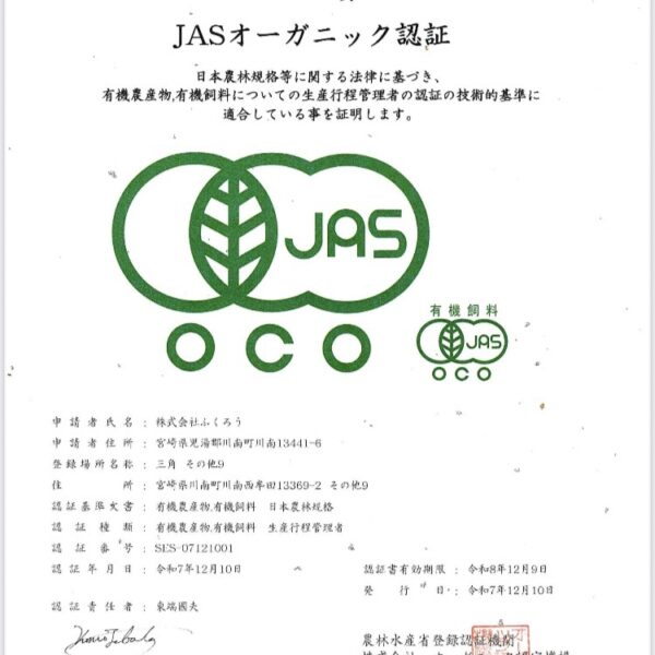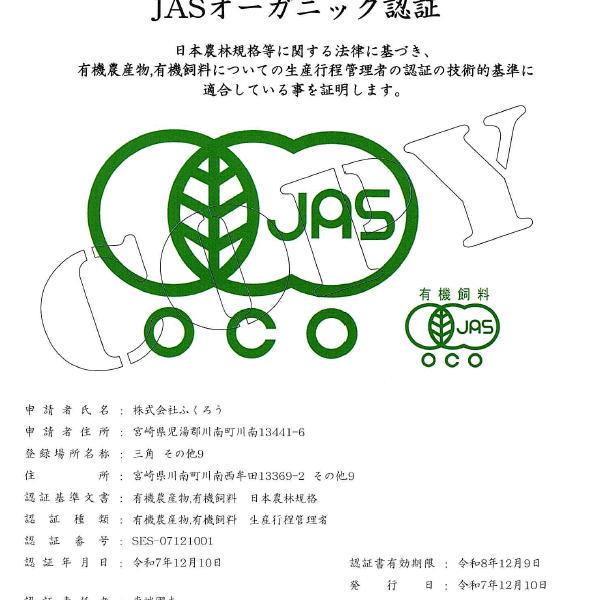 有機JAS(オーガニックJAS)認証を取得致しました。